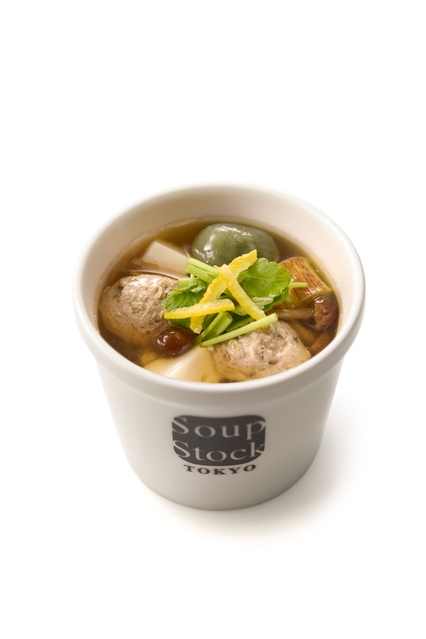 宮城県の女川町は、世界三大漁場といわれる三陸沖に面した港町です。特にさんまは、全国でもトップクラスの水揚げ量を誇り、その質の高さはプロの料理人からも高く評価されています。そのさんまをつみれにし、あごだしとさんま魚醤で仕上げた和のスープです。香り高いよもぎ白玉、せり、柚子、焼き葱とさんまの出会いをお楽しみください。