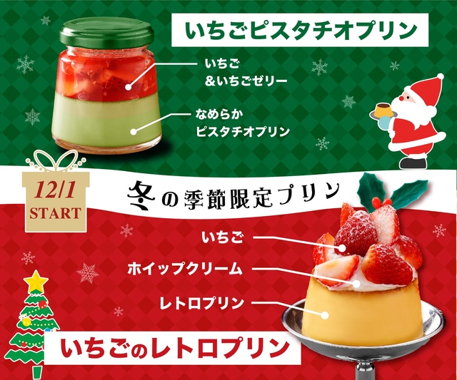 こんにちは!B1階【プリンに恋して】です🍮 12月1日より新登場する、新作のキャラメルプリン、冬の季節限定プリン、そしてエッグタルトのご紹介です♪ ◆新作!キャラメル好きにはたまらない🧡! 『塩キャラメルプリン〜Wキャラメル仕立て〜』 とろけるキャラメルプリンの上に、ロレーヌ岩塩をきかせた塩キャラメルソースをかけた2層仕立てのなめらかプリン! 濃厚なキャラメルの甘みとほんのり塩味のハーモニーをお楽しみください☺️ ◆レトロプリン×いちごの冬限定プリン🍓 『いちごのレトロプリン』 看板商品のレトロプリンにホイップクリームといちごをたっぷりとトッピング🍓 仕上げに粉糖で雪化粧した期間限定商品です♪ 25日までは、上に小さな柊の飾りを乗せてクリスマス仕様で提供します🎄🔔 ◆クリスマスカラーのなめらかプリン❤️💚 『いちごピスタチオプリン』 ピスタチオの濃厚なめらかプリンの上に、果肉たっぷりのいちごゼリーを乗せた二層仕立てのプリン! 赤と緑の見た目が、まさにクリスマスにぴったりのプリンです♪ 25日までは、特別仕様《サンタ仕様の女の子のシール付き》で提供します🎅 ◆冬のおやつにぴったりな、やさしい味わい🍎 『ごろごろりんごのエッグタルト』 サクサクのパイタルトの中に、 カスタードとシナモンシュガーを絡めたりんごをたっぷりと入れて焼き上げました🥧💭 エッグタルトの全フレーバーの中で、最も大人気のフレーバーです🍎✨ クリスマスパーティーや3時のおやつに、季節限定プリンはいかがですか? 皆さまのご来店を心よりお待ちしております🍮🎄 ●商品概要 商品名 塩キャラメルプリン〜Wキャラメル仕立て〜《NEW‼️》 販売期間 2025年12月1日(月) 〜 価 格 491円(税込価格 530円) 商品名 いちごのレトロプリン 販売期間 2025年12月1日(月) 〜 価 格 630円(税込価格 680円) 商品名 いちごピスタチオプリン 販売期間 2025年12月1日(月) 〜 価 格 491円(税込価格 530円) 商品名 ごろごろりんごのエッグタルト 販売期間 2025年12月1日(月) 〜 価 格 269円(税込価格 290円) ※上記日程は予定です。状況に応じて、日にちが変更となる場合がございます。ご了承くださいませ。 ●店舗情報 店舗名:プリンに恋して Esola池袋店 所在地:東京都豊島区西池袋1丁目12番1号 エソラ池袋 B1階(東京メトロ有楽町線南通路西改札出てすぐ) 電話番号:03-3590-6051 営業時間:11:00〜21:00 D&NコンフェクショナリーのLINE公式アカウントにて最新情報を配信! 友達追加は以下リンクから♪ https://lin.ee/xLQcisZ 🔔お知らせ Instagram 公式アカウントを始めました! フォローして最新プリン情報をいち早くゲットしよう📱🍮 @ilovepudding_official https://www.instagram.com/ilovepudding_official/