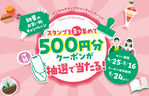 スタンプを3つ集めて500円分クーポンが抽選で当たるキャンペーンを実施いたします!