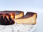 珍しい2層のバスクチーズケーキは大人気商品です。上部はプレーン、下部は10種類のフレーバーからお選びいただけます。