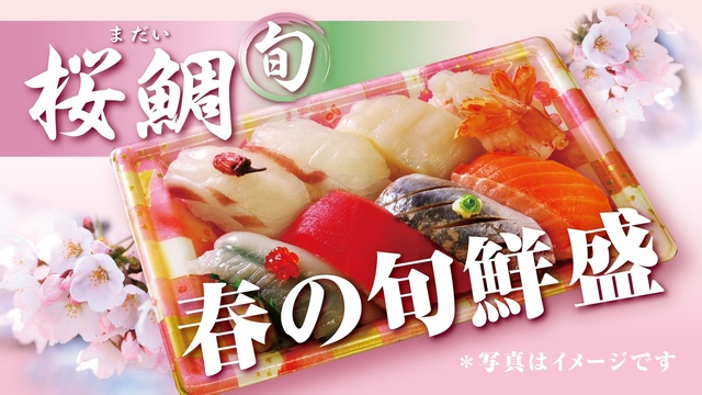 【春の旬鮮盛】 旬の桜鯛(まだい)が彩り豊かなネタと楽しめる盛合せ。 桜の花びらを添えたにぎりは、 塩味と春の香りが旨味を引き立てます。 春感じる一品、ぜひご賞味ください。